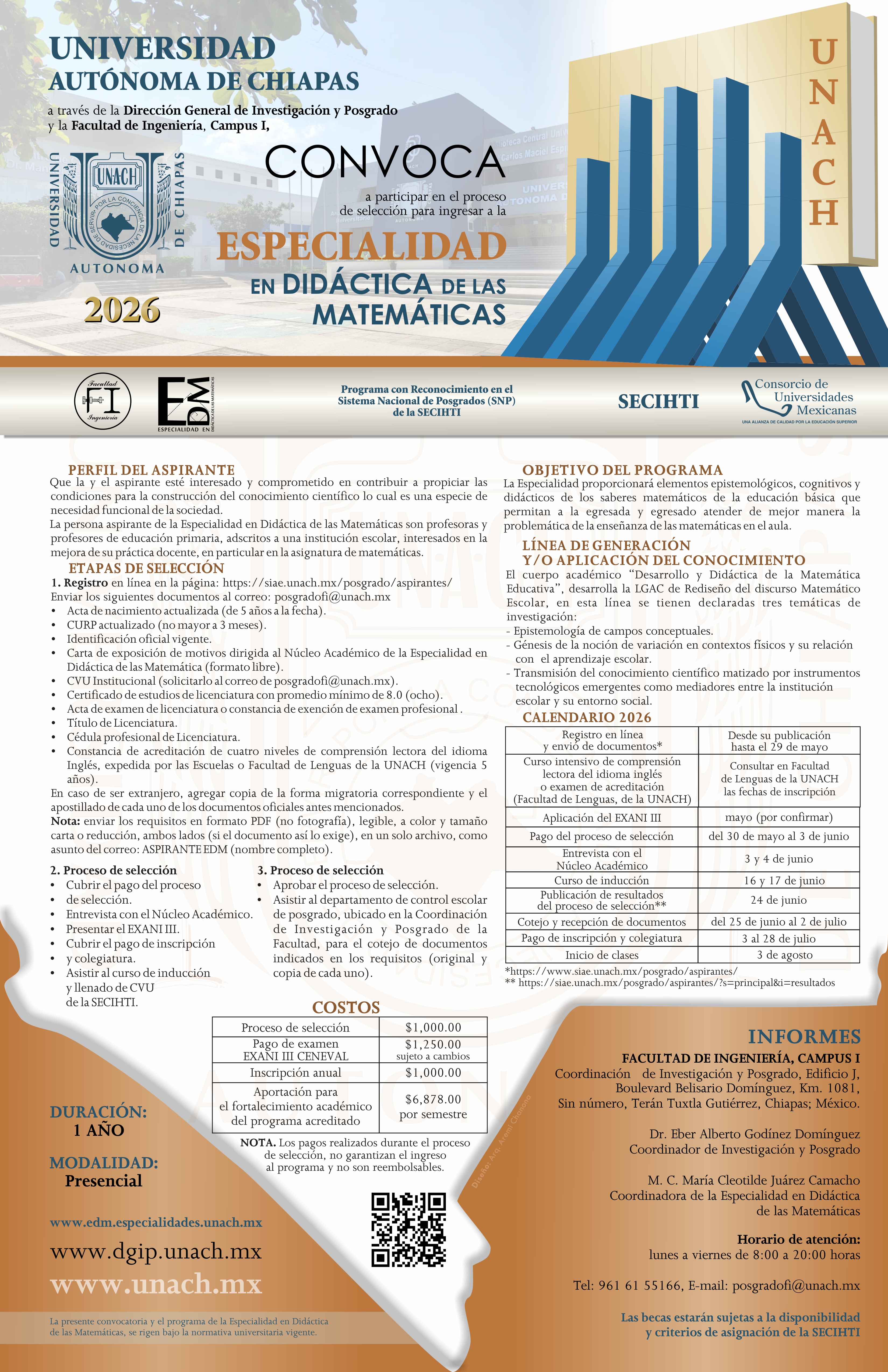 Convocatoria Especialidad en Didáctica de las Matemáticas